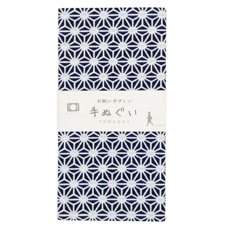 Tenugui towel in cotton with asanoha pattern in dark blue