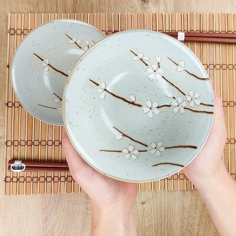 Elegant and refined, these two Japanese bowls will sublimate your meals. The ceramic is delicately decorated with cherry blossoms, also known as sakura in Japanese. This cherry blossom bowl set includes two Japanese rice bowls and two pairs of wooden chopsticks.
