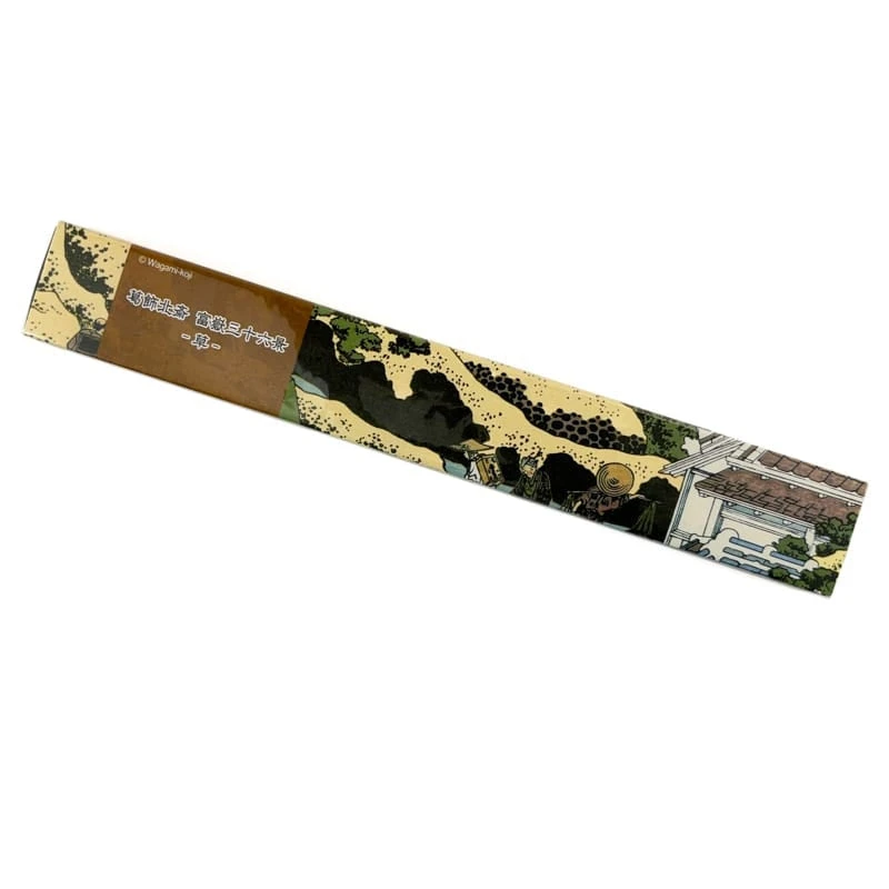 A support to Japanese artistry, this paper fan showcases a masterpiece by Hokusai, the renowned master of prints. Adorned with “Surugadai in Edo” from the iconic series “Thirty-six Views of Mount Fuji,” this fan exudes sophistication. Embrace elegance while staying cool during the summer by gracefully unfurling this traditional Japanese accessory. When not in use, it doubles as a decorative piece when placed on a stand, enhancing the charm of any shelf or chest of drawers.