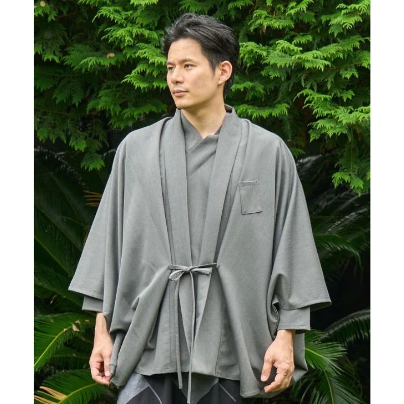 Complete your basic outfit with this grey kimono jacket for men and you’ll get an elegant and modern Japanese look. Comfortable and easy to wear, this grey kimono jacket can be worn over a t-shirt or turtleneck. The sleeves are large and the collar is folded down. At the front, links to tie allow to wear the jacket either open or closed. A beautiful fabric for a kimono jacket to be worn without moderation and to keep for a long time.