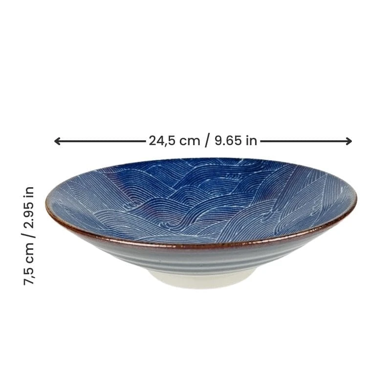 Sea wave patterns are very popular in Japan. In Japanese, the term “araumi” means a rough sea or stormy sea. This big Japanese bowl will look great in the center of your table to welcome guests. Halfway between a soup plate and a bowl, it is perfect to serve your mixed salads or your cooked dishes.