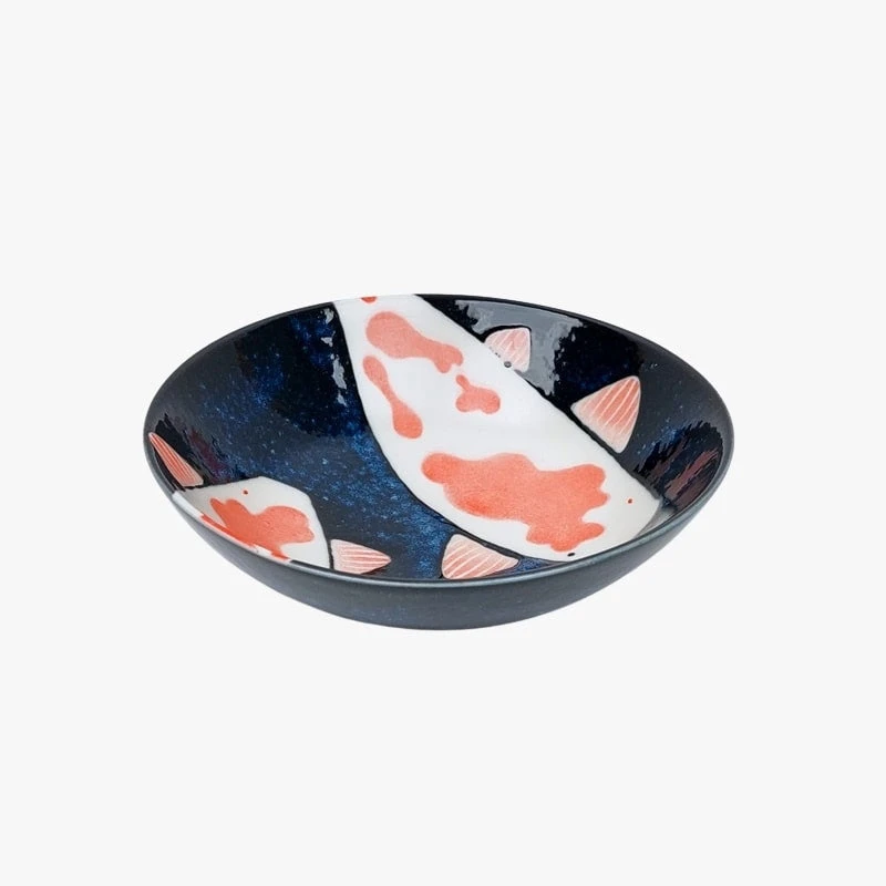 Enhance your dining experience with this Japanese bowl, adorned with gracefully swimming koi carp. Its versatile size makes it perfect for serving soups, salads, rice, or even desserts. Crafted in Gifu Prefecture, this Mino porcelain bowl seamlessly blends tradition and beauty to enrich your table setting.