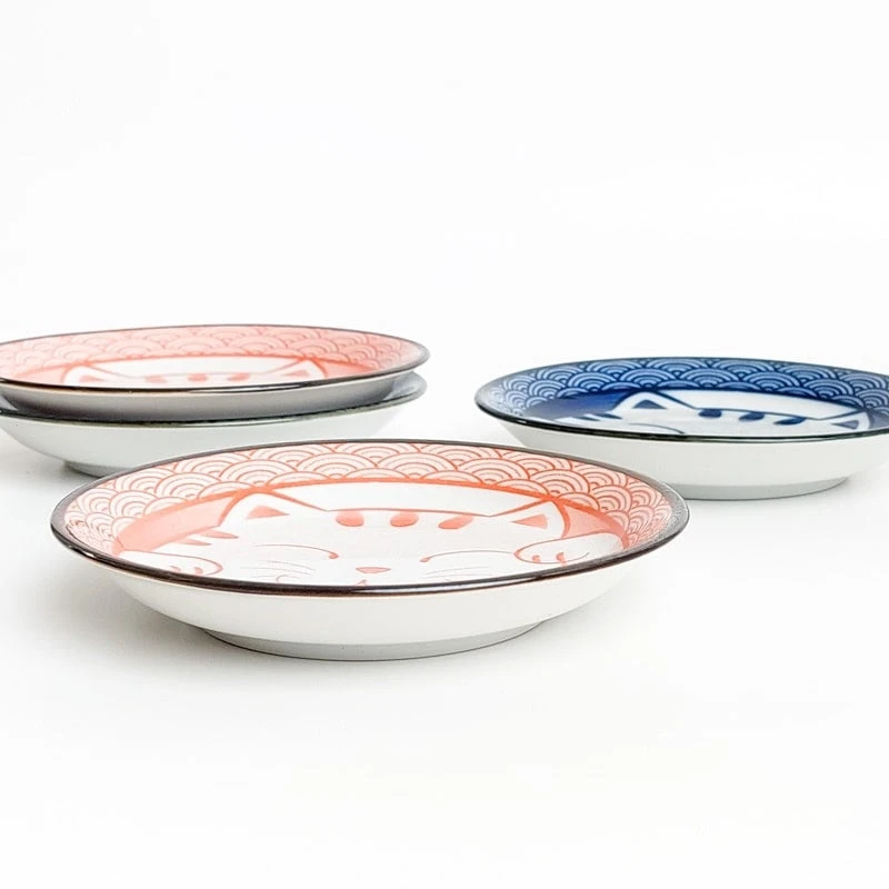 Add a playful, lucky touch to your table with this set of Japanese Cat plates. Each small plate features an adorable Maneki Neko, the famous Japanese cat symbolizing good luck and prosperity. In blue and red, this set brings a cheerful atmosphere to your meals. Ideal for serving appetizers, desserts, or small starters, this set is perfect for lovers of Japanese culture and collectors of cute, authentic items.