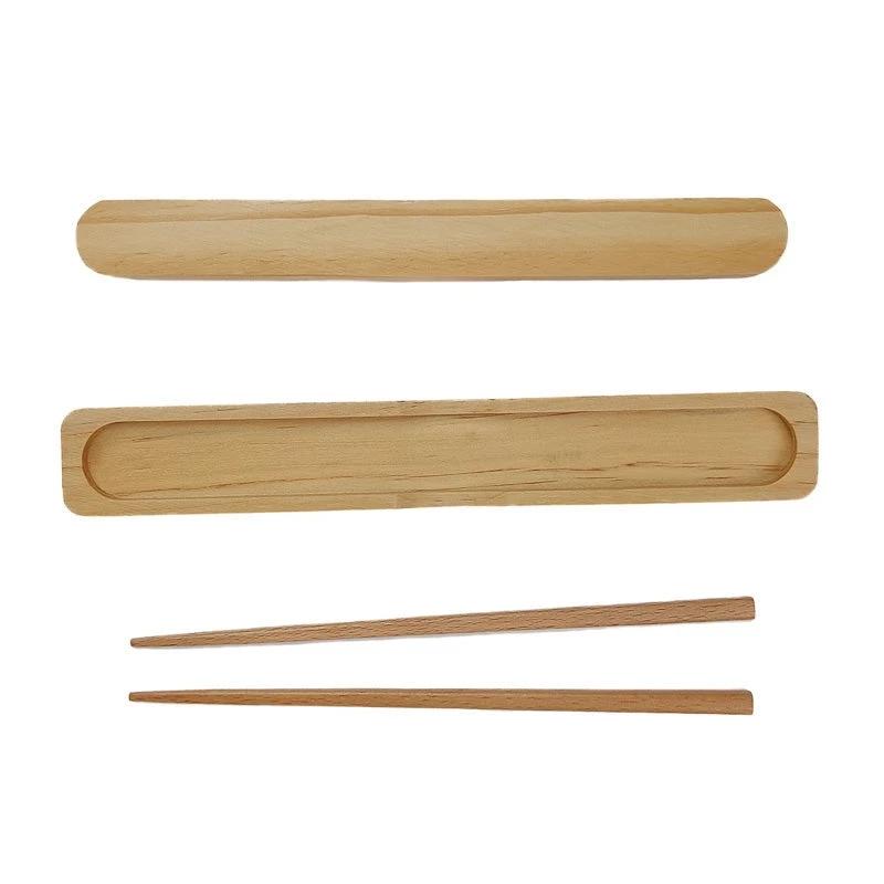 Compact and practical, these Japanese wooden chopsticks are sold with their carrying case. Their size is perfect for accompanying a bento box. The pointed ends of the chopsticks have an angled finish, making it easy to grip slippery foods like noodles or beans.