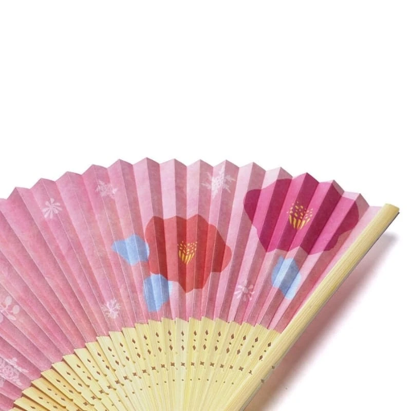 Delicate Japanese fan with Yuki Tsubaki winter camellia design