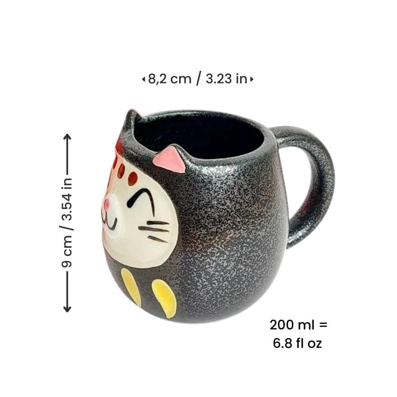 Set of Two Daruma Cat Japanese Mugs