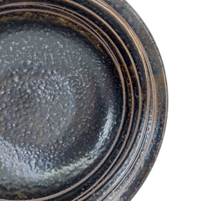 Black and brown Japanese ramen bowl with striated pattern