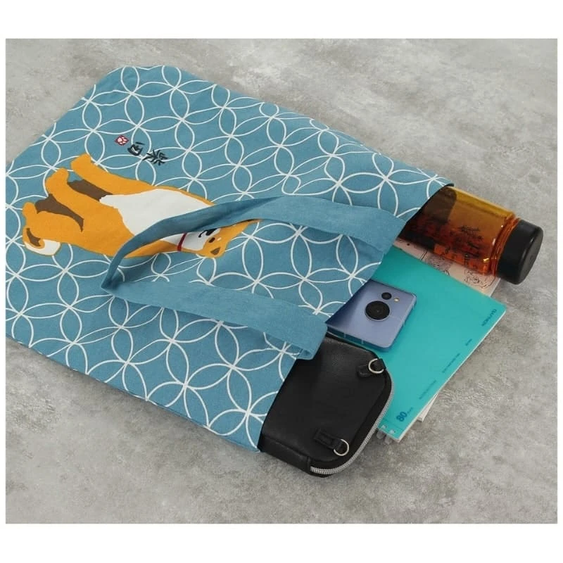 Blue Japanese tote bag with Shiba Shippo pattern