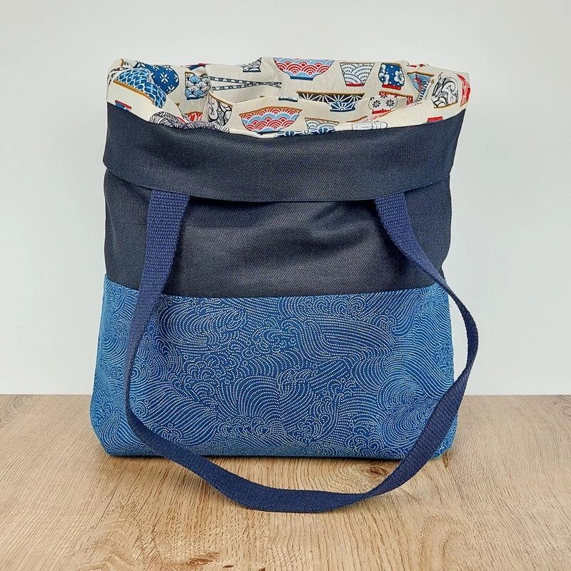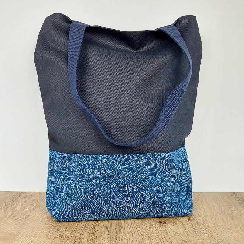 Japanese fabric tote bag with nami pattern