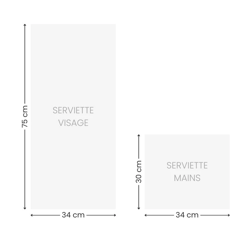 - 1 face towel: 34 x 75 cm / 13.4 x 29.5 inches