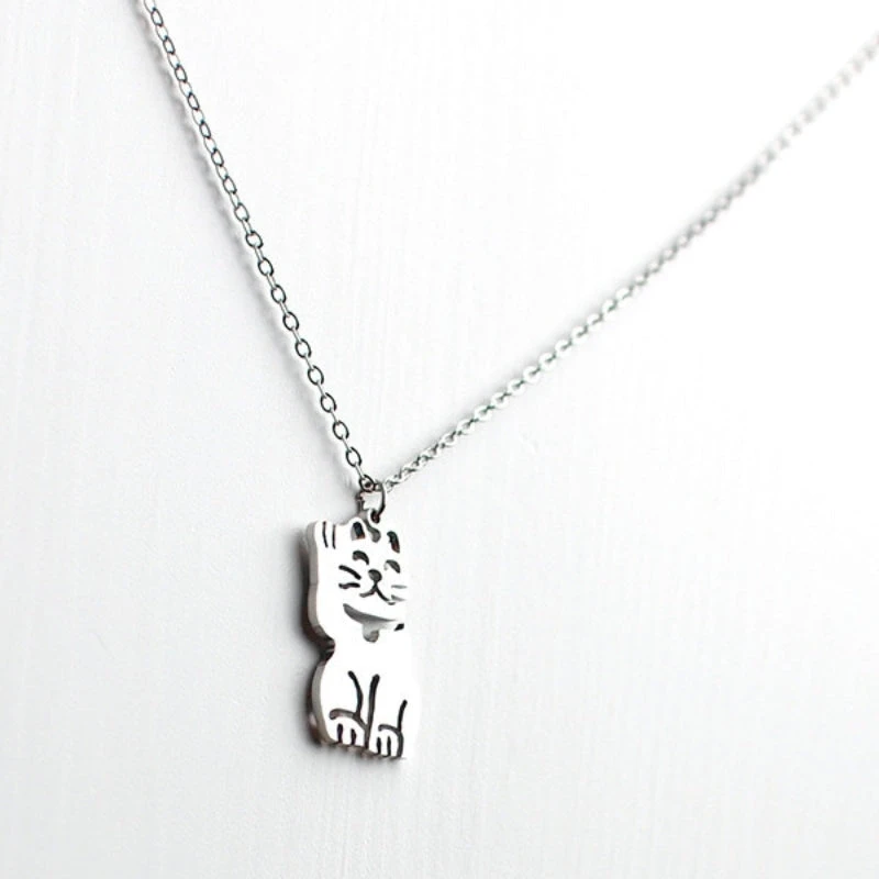 The Maneki Neko is a very popular lucky charm in Japan. This Japanese cat raises its front paw to invite luck and good fortune into your life. Made of stainless steel, this Japanese Maneki Neko necklace will become your favorite lucky charm. A great gift idea to wish the best to a loved one.