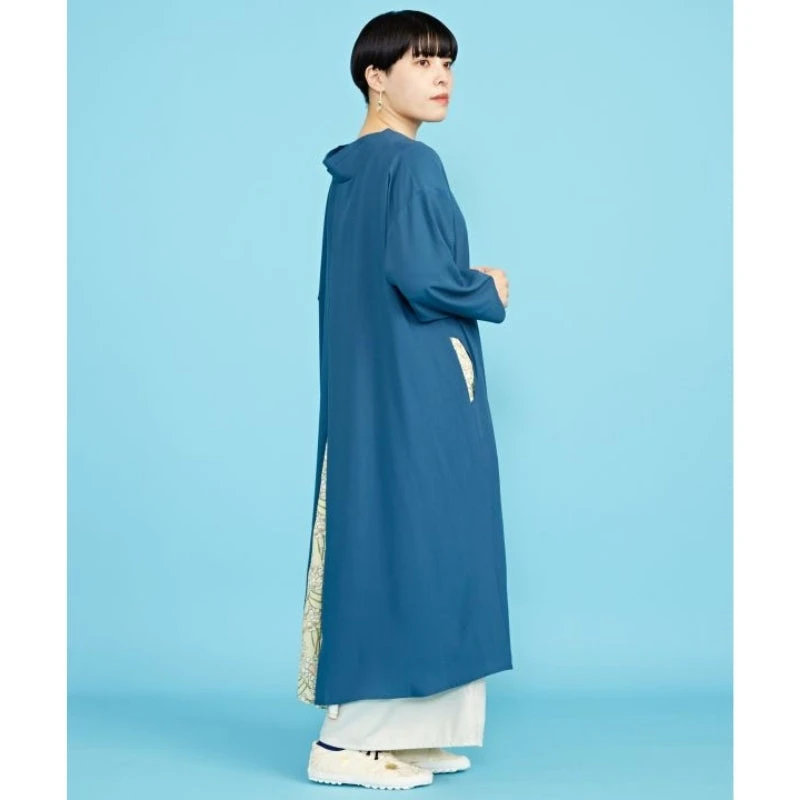 A unique and original fashion piece, this modern Japanese dress is sure to make a statement. On the front, the dress gives an impression of simplicity with a kimono collar and a loose fit. The opening in the back reveals a beautiful Japanese spring pattern that is also found on the side pockets. This pattern of rapeseed flowers appears and disappears to the rhythm of your steps. The soft fabric and the loose fit will provide you with a comfortable and relaxed feeling.