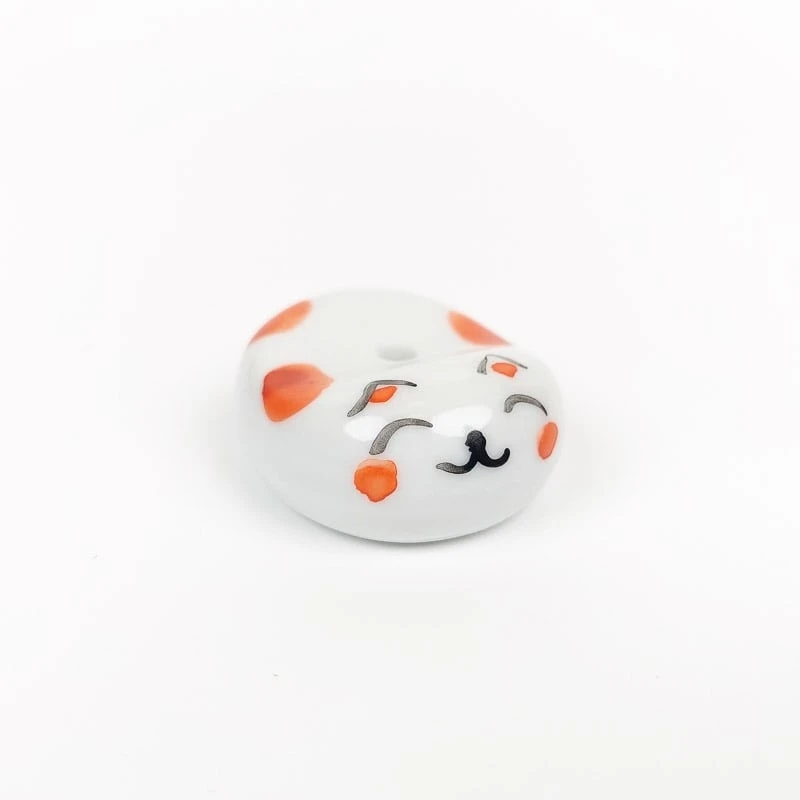 This small Japanese bean-shaped incense holder features the smiling and friendly face of the neko cat. An essential item to hold your incense stick that will bring a kawaii touch to your meditation ritual. Perfect to complete an incense box to offer as a gift to a friend or family member.