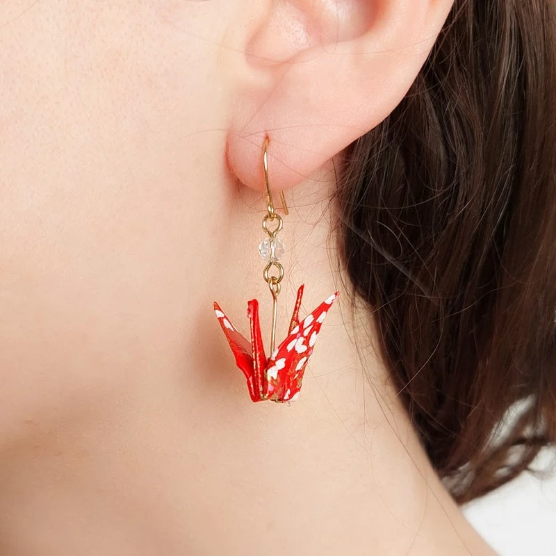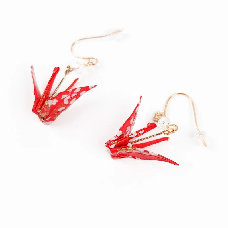 Capture a piece of Japanese art wherever you go. Hand-folded from Japanese paper, these red origami crane earrings are lightweight and comfortable for everyday wear. Whether you’re at the office or on vacation, they’re perfect for adding a Japanese flair to your style!