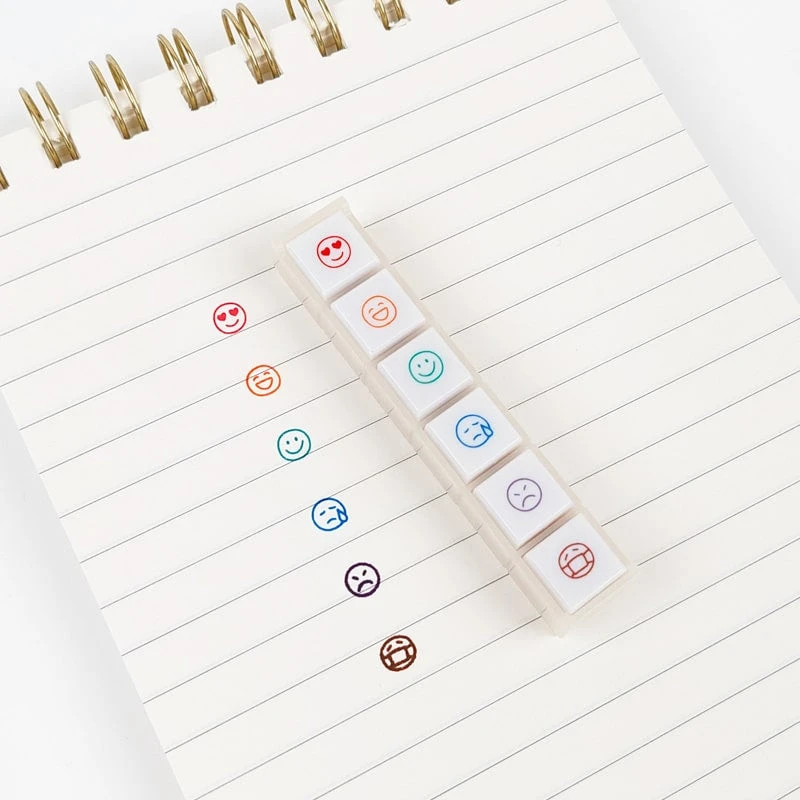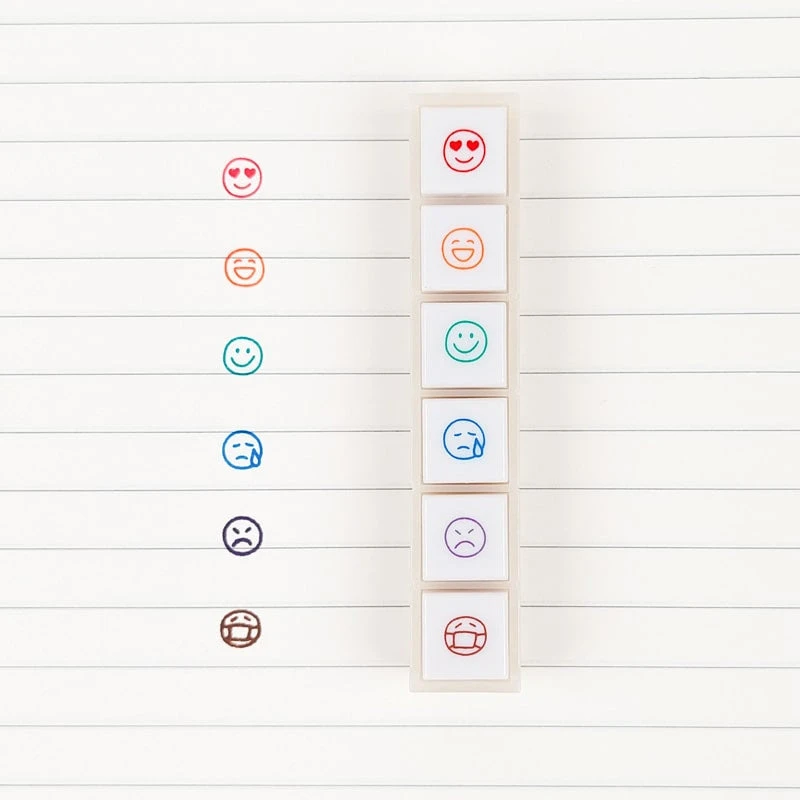 Personalize your notes and notebooks with this Pochitto stamp set featuring six different smileys! Add your mood to your diary or bullet journal by stamping a happy, sad, or sick face. It’s easy to use: simply remove the bottom cover, position the smiley face where you want it on your sheet, press the button, and voilà!