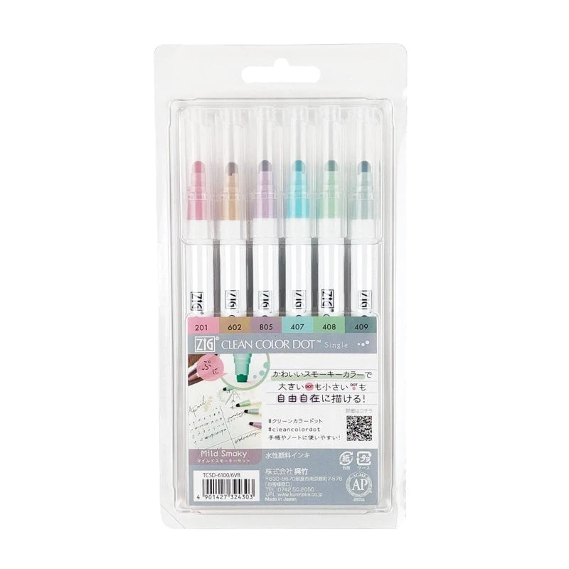 This set of six Clean Color Dot highlighters is perfect for decorating your bullet journal and highlighting important notes. The round tip has a fun elasticity that makes it easy to draw circles of various sizes. The smoky colors add a unique touch to your notebooks.