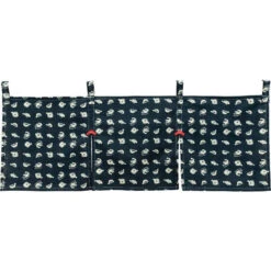 This short Japanese noren, split into three panels, features a charming marine motif with fish and shellfish. The term “sakana” means “fish” in Japanese. This decorative curtain is ideal for framing a door or a corridor leading to the kitchen. At 30 cm (11.8 inches) long, it adds a touch of Japanese authenticity to your decor without obstructing the passage.