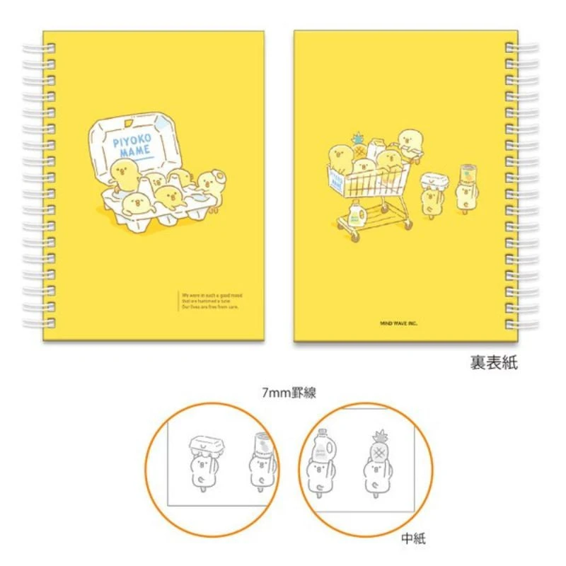 Carefree and fun, Piyokomame chicks have conquered the world of Japanese stationery. Staged in an egg carton and a shopping cart, these little characters are sure to delight. This Japanese spiral notebook features a hard cover with a matte finish and high-quality lined paper. Perfect for note-taking, it can also be used as a recipe book with its cooking theme.