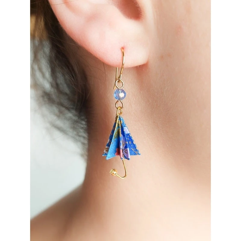 Japanese earrings with blue origami umbrella